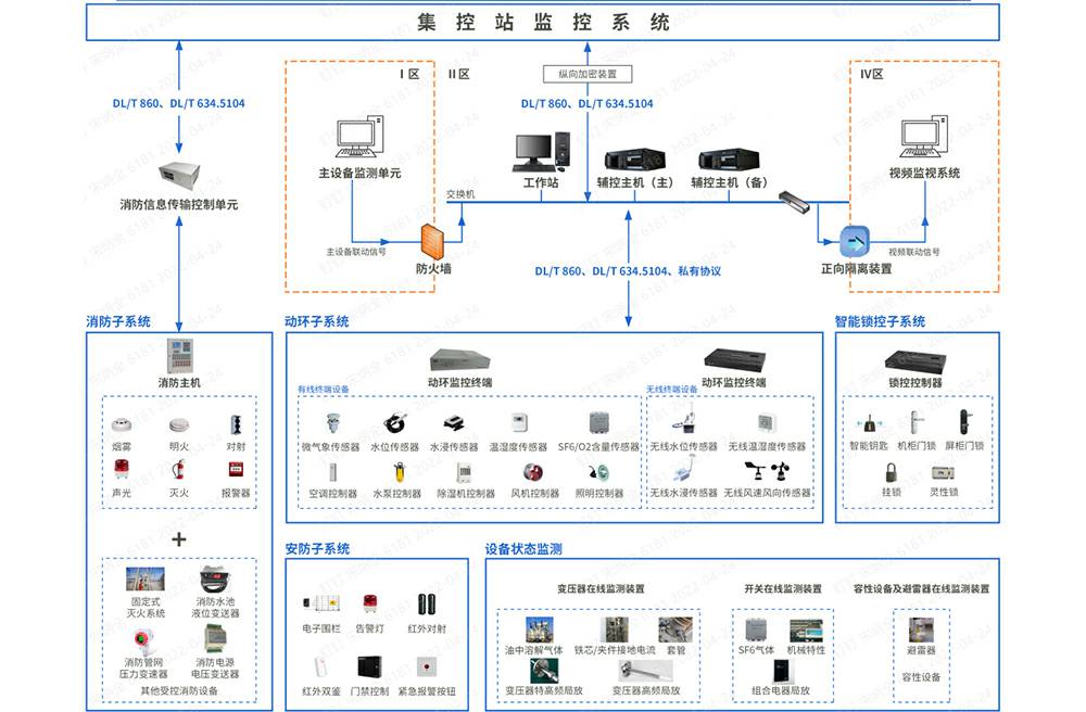 变电站辅助设备监控系统完成对变电站内在线监测、消防、安全防范、动力环境监测、智能锁控等子系统的整合,实现辅助设备数据采集、数据处理、运行监视、操作控制、对时、权限、配置、数据存储、报表以及智能联动等功能,为变电站综合监控提供辅助信息支撑。系统实现全方位、立体式的在线监控和巡视,并将监控和巡视结果及时反馈给运维人员,提出运维建议,协助用户保障变电站的安全运行和设备正常的运行。