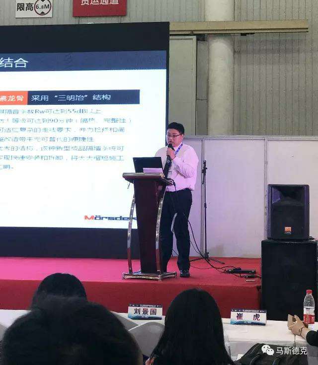 兰州天佑智能制造技术有限公司市场部总监周博一先生在展会现场,应主办方的邀请,演讲关于“新型内墙材料系统”的报告,获得现场观众及主办方的一致认可。